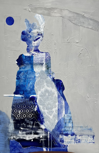 Artist Annemare Rijnbeek (1961) from Den Haag, is also a story teller. Not with ceramics, but with paint and collage on canvas. She hasn't always been so preoccupied by art.After a degree in marketing and economics she opted for a career in tourism and travelled around the globe. As of 2003 she started working in a studio in The Hague and took her calling seriously.Her work is lyrical en deep.With acrylics she paints all kinds of random details, to be completed with existing elements such as old pictures, paper and texts. The layers of paints is scratched and sandpapered. This way she builds up sensitive images.One of the most poetical paintings is Moondrops. Pearls from the moon are cought in a bowl.